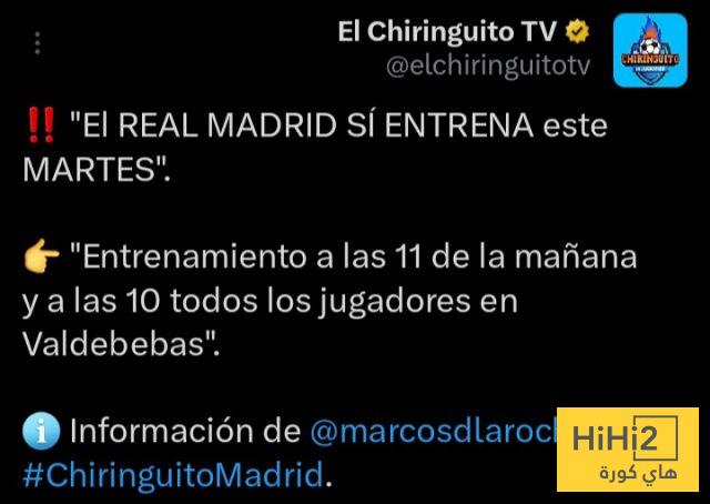 “ريال مدريد سيتدرب هذا الثلاثاء.”