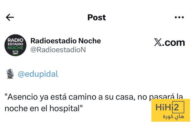 “أسينسيو الآن في طريقه إلى منزله ولن يقضي الليلة في المستشفى”.