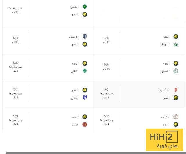 وفيما يلي جدول مباريات النصر المتبقية في الدوري: