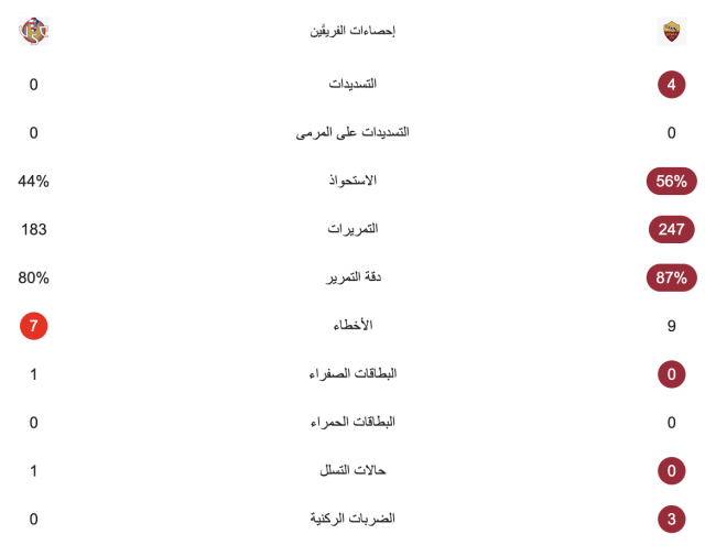 في الكورة : الشوط الأول – إحصائيات مباراة روما وكريمونيسي
