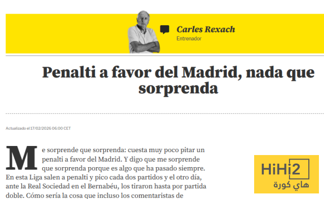 لا يتطلب الأمر سوى القليل جدًا لمنح ريال مدريد ركلة جزاء، وأقول إنني مندهش لأنه من الشائع في هذه المسابقة أن يتم احتساب ركلات الجزاء في كل مباراة تقريبًا، وفي المباراة الأخيرة ضد ريال سوسيداد على ملعب سانتياغو برنابيو، تم احتساب ركلتي جزاء. كان الأمر سيئًا للغاية لدرجة أن المعلقين التلفزيونيين الذين قاموا بتحليل المباراة لم يتمكنوا من إلا أن يعبروا عن دهشتهم من توجه الحكم مباشرة إلى ركلة الجزاء في كل مرة سقط فيها فينيسيوس داخل منطقة الجزاء.