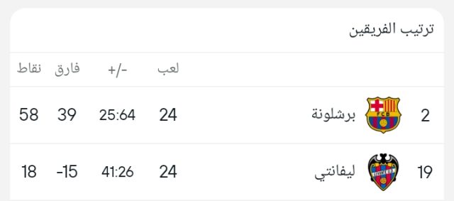 في الكورة : ترتيب برشلونة في الليغا قبل مواجهة ليفانتي