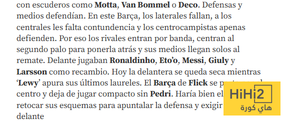 في برشلونة اليوم، يخيب المدافعون الجناح، ويفتقر قلب الدفاع إلى الحسم ولاعبو الوسط بالكاد يدافعون. لهذا السبب، يهاجم المنافسون من الأجنحة، ويرسلون العرضيات إلى القائم البعيد لإعادة الكرة، ويصل لاعبو خط الوسط بدون رقابة ليسجلوا هدف الفوز. في الهجوم كان لدينا رونالدينيو، إيتو، ميسي، جولي ولارسون كبدلاء. اليوم الهجوم ضعيف، فيما يستمتع ليفاندوفسكي بآخر عروضه. ويعاني برشلونة بقيادة فليك من شرخ في خط الوسط ولم يعد يلعب بشكل متماسك بعد إصابة بيدري. ومن الأفضل للمدرب الألماني تعديل تشكيلته لتقوية الدفاع وزيادة دقة الهجوم.