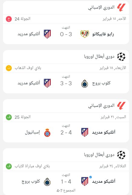 في الكورة : نتائج أتلتيكو مدريد قبل مواجهة اوفييدو