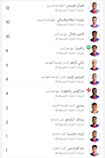 وجاءت قائمة هدافي برشلونة على النحو التالي: